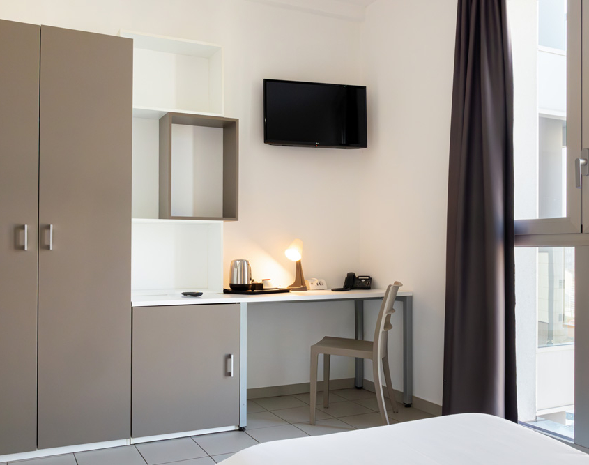 Le camere sono provviste di interni climatizzati e insonorizzati, e vantano una TV a schermo piatto, un minibar, una cassaforte e un bagno privato con asciugacapelli e set di cortesia. Inoltre come ospiti dell’hotel potrete utilizzare distributori automatici e il deposito bagagli gratuito, e il personale della reception sarà a vostra disposizione a tutte le ore del giorno e della notte.