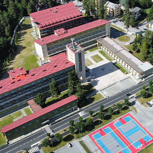 Il Villaggio Olimpico, è un hotel tre stelle che dispone di numerosi spazi dedicati alle attività sportive e ricreative come campo da calcio, volley, basket, il teatro, piscina, discoteca numerose aule didattiche, multimediali e ricreative.
